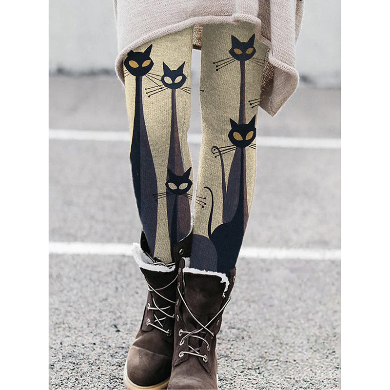 Women's Normal Tights Pants Trousers Leggings Fashion Casual Lounge Ankle-Length High Waist Cat Print Butt Lift Comfort Tummy Control High Elasticity Yoga Halloween Weekend Black White Orange Light