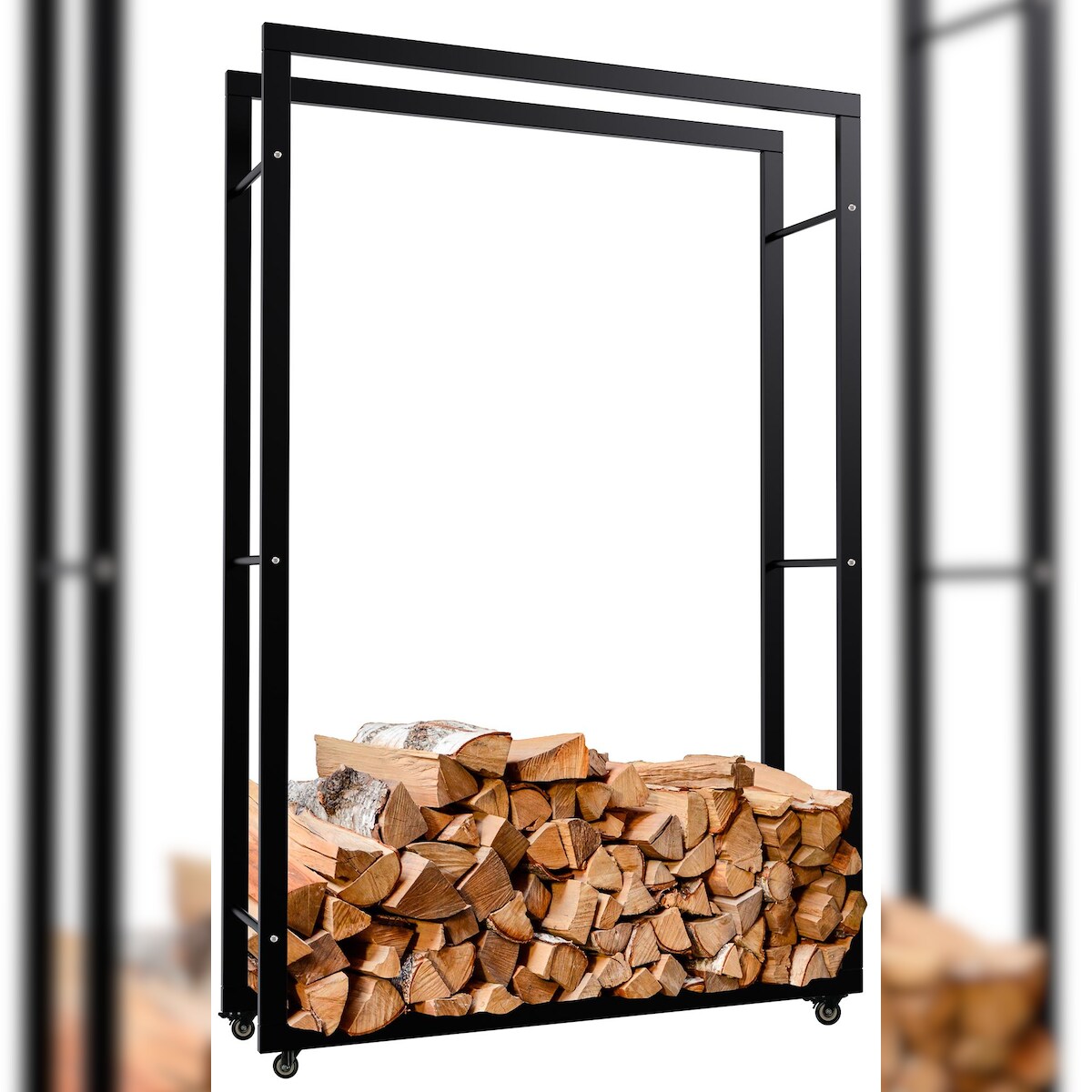 CLP Kaminholzständer Keri mit Rollen schwarz/25x100x150 cm