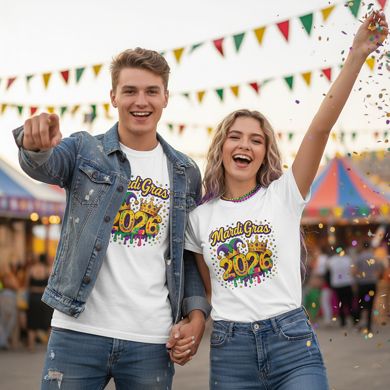 Print Mardi Gras 2026 T-shirt Sleeve T-shirt Graphic Funny for Couple's Men's Women's Adults' 3D Print for Carnival Mardi Gras Party Festival