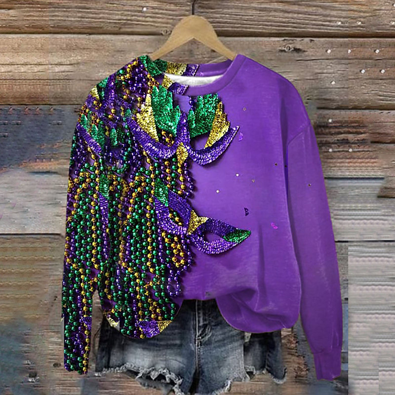 Anime 3D Print Long Sleeves Cartoon Manga Sweatshirt NOLA Graphic Mardi Gras 2026 for Women's Adults' 3D Print for Carnival Mardi Gras Party Casual Daily