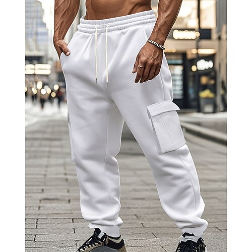 Herren Jogginghose Fleecehose Winterhose Cargo-Jogginghose Kordelzug Tasche Elastischer Bund Einfach Komfort Warm Sport im Freien Täglich Mode Lässig Schwarz Weiß Mikroelastisch