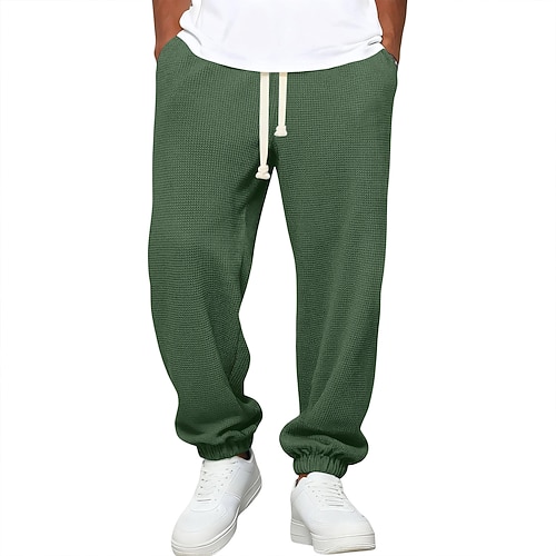 Herren Jogginghose Hose Waffelhose Kordelzug Elastischer Bund Einfach Atmungsaktiv Volle Länge Sport im Freien Lässig Täglich Mode Streetwear Blau Schwarz Mikroelastisch