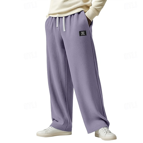 Herren Jogginghose Hose Gerade geschnittene Sweatpants Waffelhose Kordelzug Tasche Elastischer Bund Einfach Komfort Sport im Freien Täglich Mode Lässig Schwarz Weiß Mikroelastisch