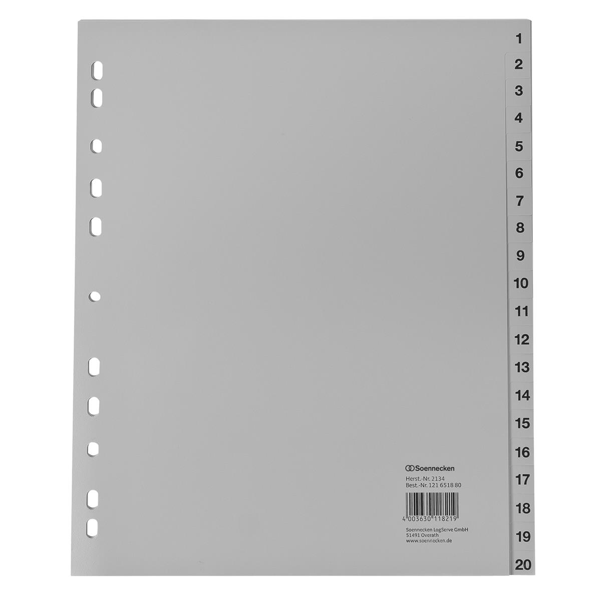 Soennecken Register 2134 DIN A4 1-20 volle Höhe Überbreite PP grau