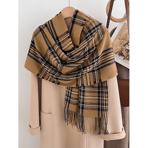 sciarpa scozzese natalizia da donna, caldo scialle invernale in tartan con frange, comodo accessorio di moda per feste e abbigliamento da esterno