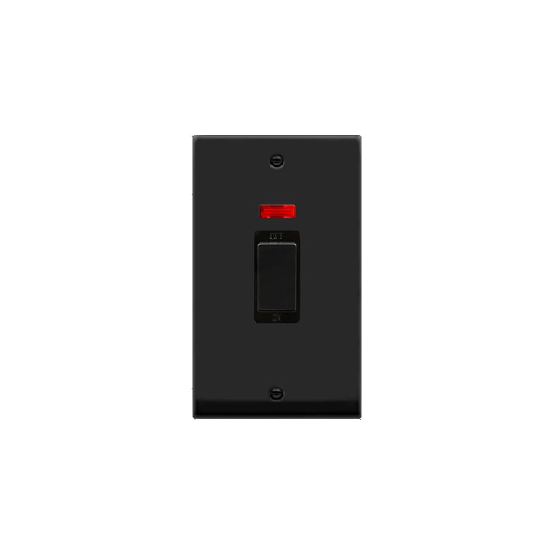 Click Deco 45A Ingot 2 Gang DP Switch with Neon Matt Black Insert Black