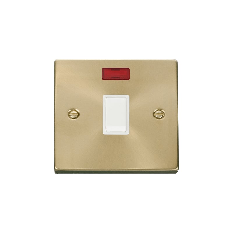 Click Deco 20A 1 Gang DP Switch with Neon Satin Brass Insert White
