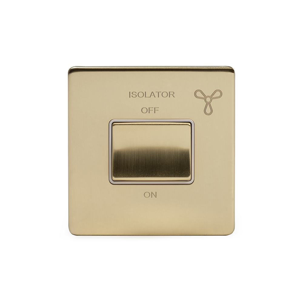 Soho Lighting Brushed Brass 10A Extractor Fan Isolator Switch 1 Gang 1-Way 3-Pole White Inserts