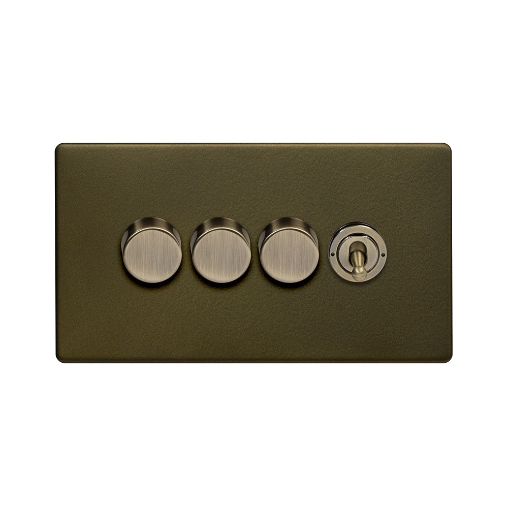 Soho Lighting Bronze 4 Gang Switch with 3 Dimmers (3x150W LED Dimmer 1x20A 2 Way Toggle)