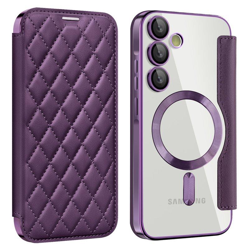 Samsung Galaxy A35 5G Fodral Rhombus Äkta Läder Magnetiskt - Lila