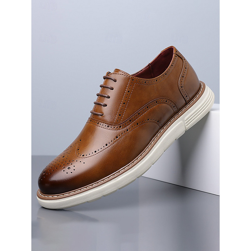 Men's Oxfords Derby Shoes Brogue Dress Shoes Wingtip Shoes Walking Business Classic British Wedding Party Evening Faux Leather Non-slipping Wear Proof Lace-up Rainbow Color Block Spring Fall
