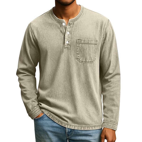 Herren Henley Hemd T-Shirt Langarm Vintage Einheitliche Farbe Retro Vintage Lässig Vintage-Stil Henley Lässig Frühling Herbst Ganzjahres Schwarz Rosa Grau Henley T-Shirt