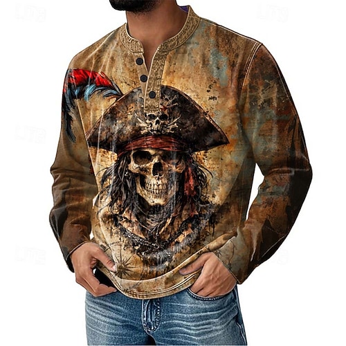 Herren Grafik Henley Hemd T-Shirt Langarm Mode Täglich Vintage-Stil Lässig Ferien Ausgehen Herbst Frühling Herbst Dunkel Braun Henley Henley T-Shirt