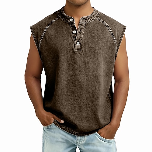 Herren Tank Top Henley Hemd Weste Ärmelloses Shirt Ärmellos Henley Sommer Einfach Mode Designer Muskel Vintage-Stil Knöpfe Lässig Täglich Streetwear Schwarz Hellgrün Rosa Top T-Shirt für Herren