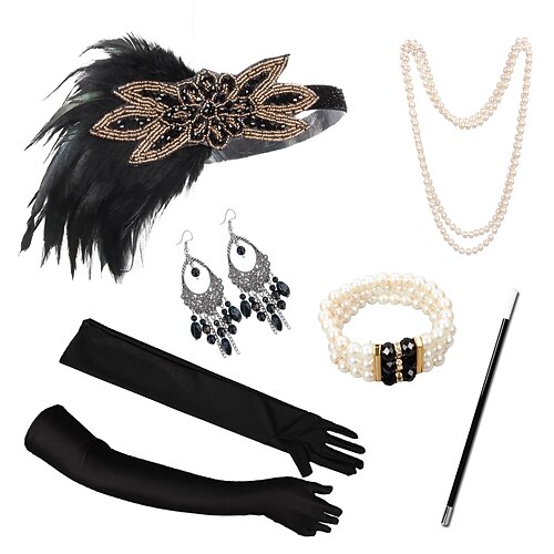 Set Retrò Vintage Anni Ruggenti Anni 1920 Fascia Flapper Copricapo Set di accessori Il grande Gatsby Ragazza Flapper Piuma Costume Per donna Natale Carnevale Mascherata Festa a tema retrò Danza