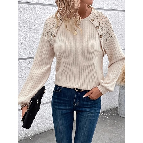 Per donna Blusa Tinta unica Elegante Casual Manica Lunga Girocollo Top Regolari Quotidiano Bottoni Cachi Primavera Autunno Inverno