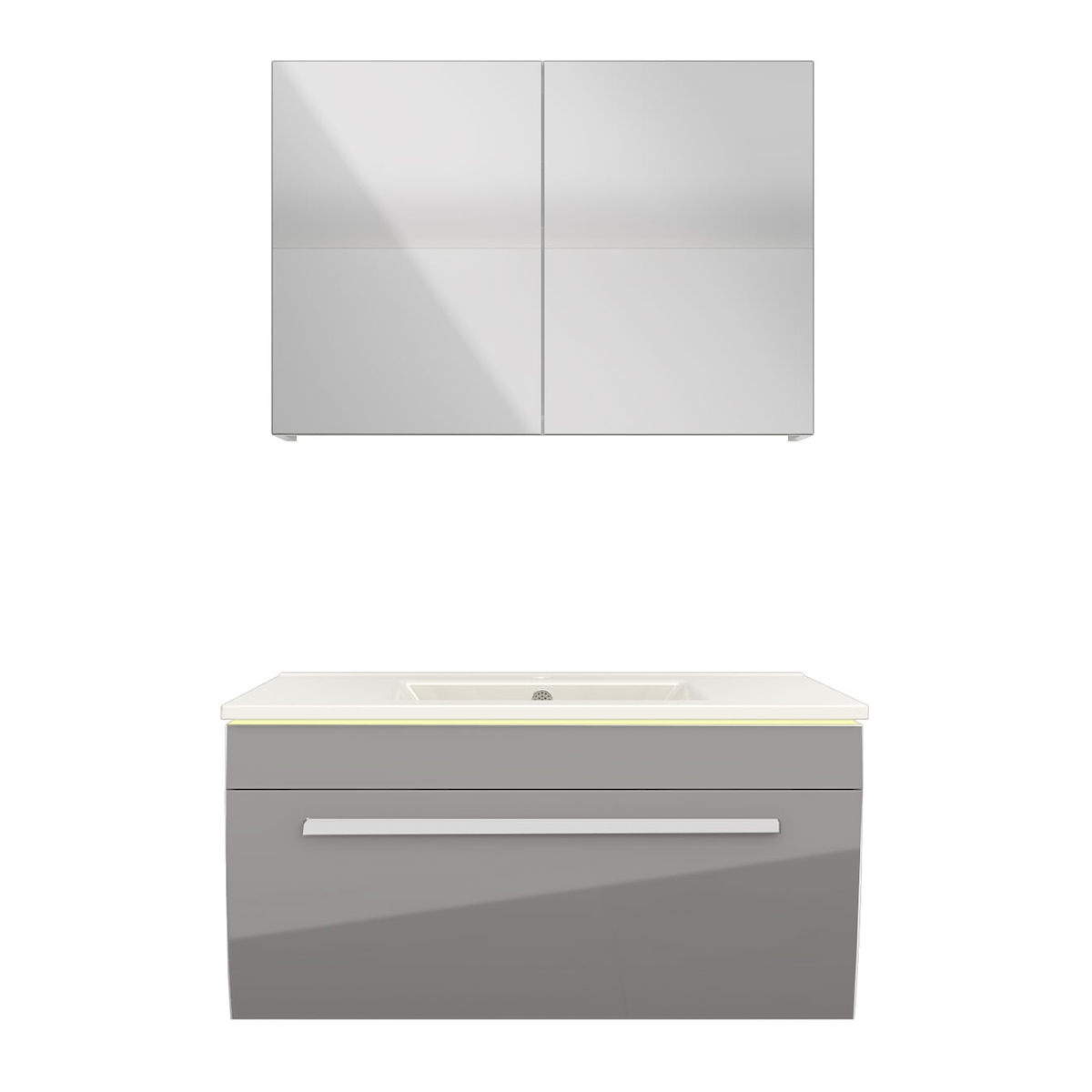 AcquaVapore Badmöbel Set Gently 3 V1 Weiß/Grau MDF Waschtisch 80cm mit 1x 5W LED-Strahler