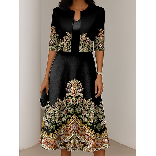 Per donna Insieme del vestito Abito Estivo Casual Floreale Stampato Abito Midi Manica 3/4 Girocollo All'aperto Quotidiano Blu Viola Verde Estate Primavera Vestibilità regolare