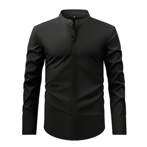 Per uomo Camicia Camicia elegante Camicia non stiro Camicia con colletto alla coreana Semplice Affari Quotidiano Nero Bianco Giallo Vino Manica Lunga Collo alla coreana Estate Primavera Abbigliamento