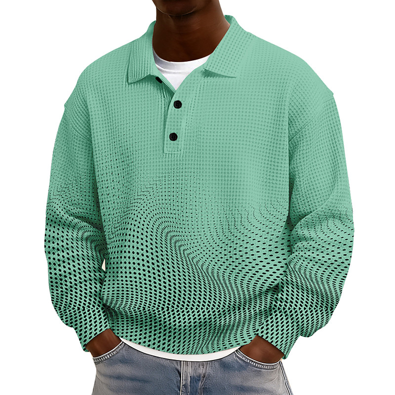 Men's Geometric Pattern Waffle Polo Shirts Long Sleeve Polo Shirts Lapel Sportswear Casual School Athleisure Daily Wear 3D Print Spring Fall Winter Blue Purple Green
