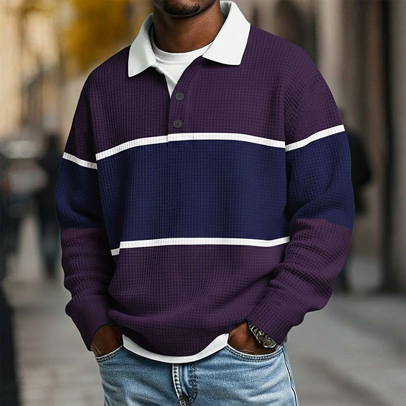 Men's Horizontal Stripes Waffle Polo Shirts Rugby Polo Long Sleeve Polo Shirts Lapel Sportswear Casual School Athleisure Daily Wear 3D Print Spring Fall Winter Blue Purple Brown