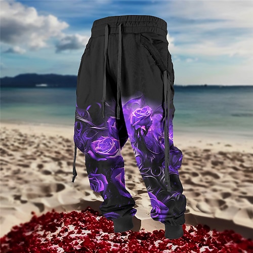 San Valentino floreale da uomo romantico stampato in 3D pantaloni casual pantaloni elastici in vita con coulisse vestibilità ampia pantaloni da spiaggia estivi a gamba dritta dalla s alla 3xl