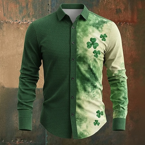 Festa di San Patrizio Per uomo Trifoglio Colore sfumato Camicia Camicia a nido d'ape Camicia casual Manica Lunga Vintage Retrò Ferie Estate Primavera Collo ripiegato Stampa 3D Testurizzato Camicie