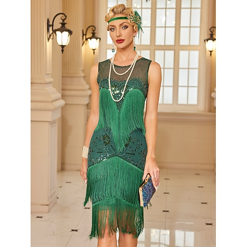 Anni Ruggenti Anni 1920 Lunghezza al ginocchio Abito Flapper Senza maniche Il grande Gatsby Paillettes Frange Scollo Tondo Costume Per donna Natale Carnevale Mascherata Festa a tema retrò Danza