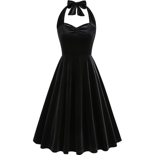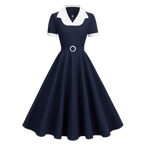 Retrò Vintage Anni 1950 Hepburn Midi Vestito Abito a trapezio Vestito Svasato Maniche corte Aderente Svasato Costume Per donna Carnevale San Valentino Casuale Ritorno a casa Festa a tema retrò