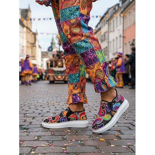 sneakers da uomo a tema carnevale con un vivace design a maschera di carnevale: calzature divertenti e colorate per carnevale, feste e festival