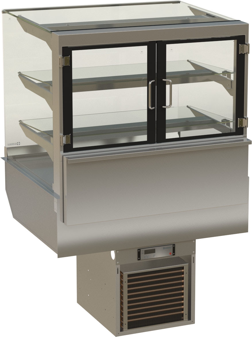 HAGOLA Showcase "Malmö" eckig, mit Tortenauszug, für 2 KB, 3 Auslagen. 920x710/265+410x778mm (BxHxT) steckerfertig mit Transporthalterung