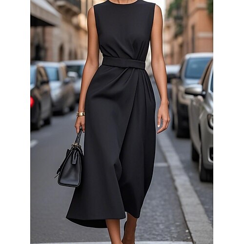 Per donna Abito Midi Abito da lavoro Abito a Tubino Elegante Moda Moderno All'aperto Vacanza Uscire Vestibilità regolare Semplice Senza Maniche Girocollo Nero Bianco Rosso Blu marino Estate Primavera
