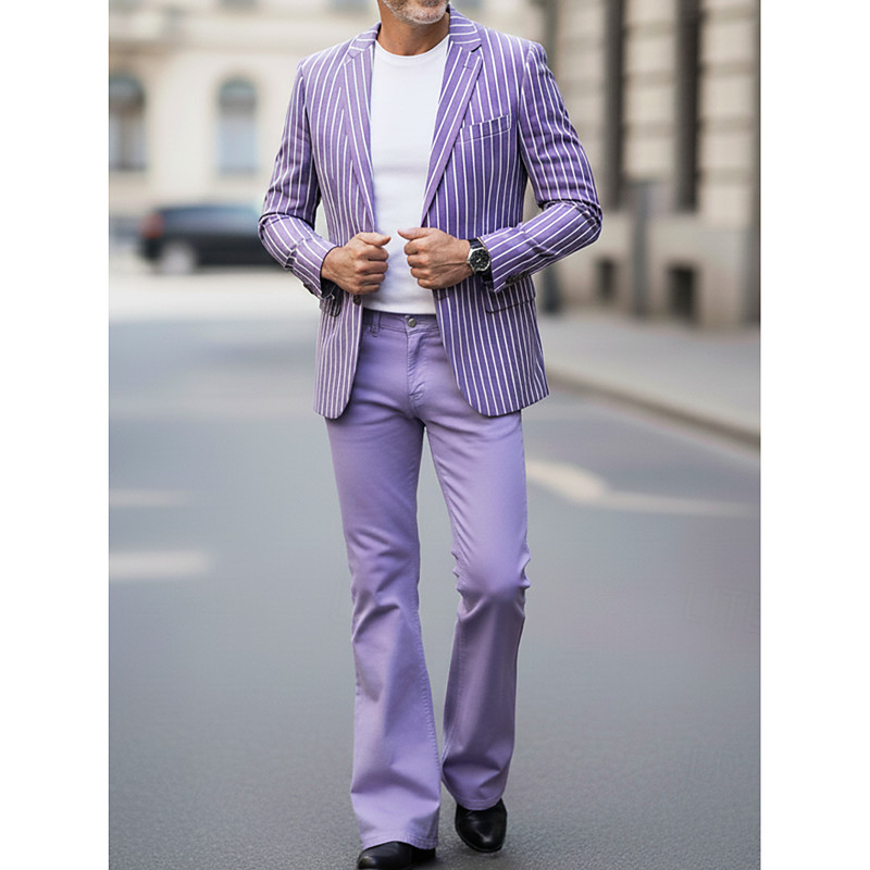 Men's BlazerDress Pants Blazer Suits Business Cocktail Party Wedding Party 2 Piece Fashion Casual Spring Fall Cotton Blend Stripe Pocket Buttons Comfortable Single Breasted Blazer Pink Purple Orange