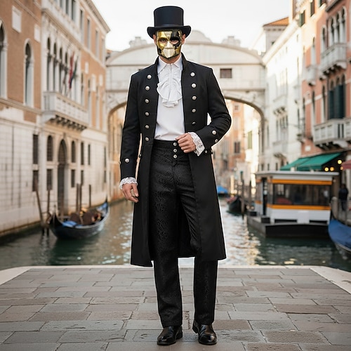 Capotto Medievale Retro Vintage del XVIII Secolo Cappello Tuxedo Vampiro Cavaliere Abbigliamento Elegante Uomo ebenezer Scrooge Elfo Fantasia Steampunk Festa Sera Cappotto per Adulti Natale