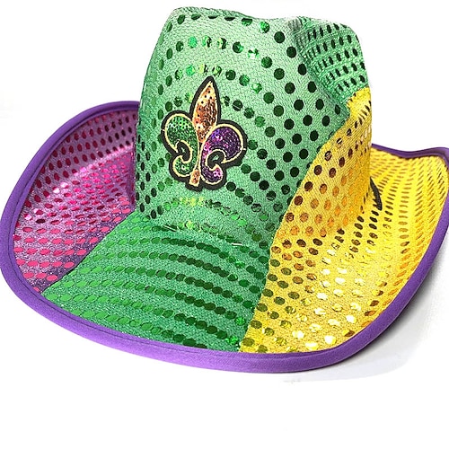 Martedì Grasso 2026 Carnevale Cappello Cosplay Paillettes Colori del Mardi Gras Adulti Per uomo Per donna Carnevale martedì grasso Martedì grasso Feste Performance Costume di Carnevale facile Vestirsi