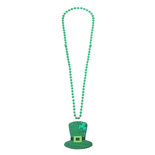 Collana in acrilico da donna per San Patrizio con motivi a trifoglio e cappello, vari stili, perline verdi, perfetta per le feste, accessori per feste