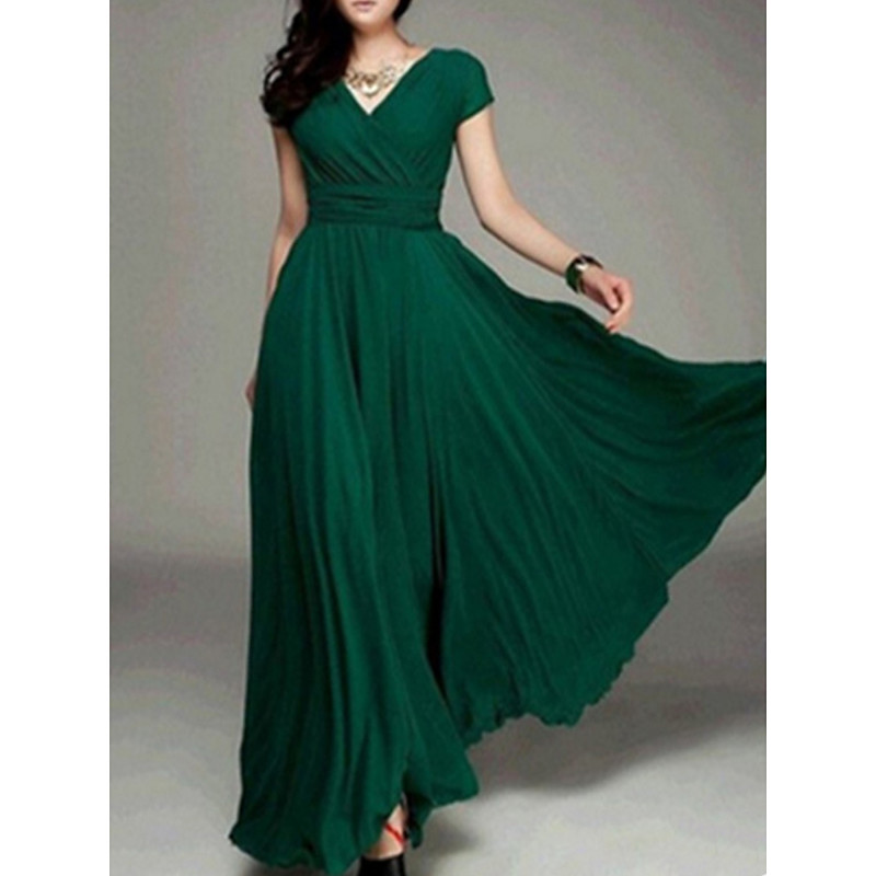 Women's Long Dress Maxi Dress Party Dress Casual Dress Swing Dress Modern Elegant Dress Daily Wedding Guest Date Slim Pure Color Short Sleeve V Neck Blue Black White Yellow Summer Spring