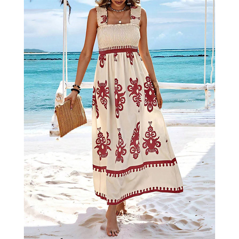 Women's Long Dress Maxi Dress Casual Dress A Line Dress Summer Dress Boho Dress Bohemia Hawaiian Stylish Vacation Daily Date Regular Fit Graphic Sleeveless Square Neck Black Pink Red Green Summer