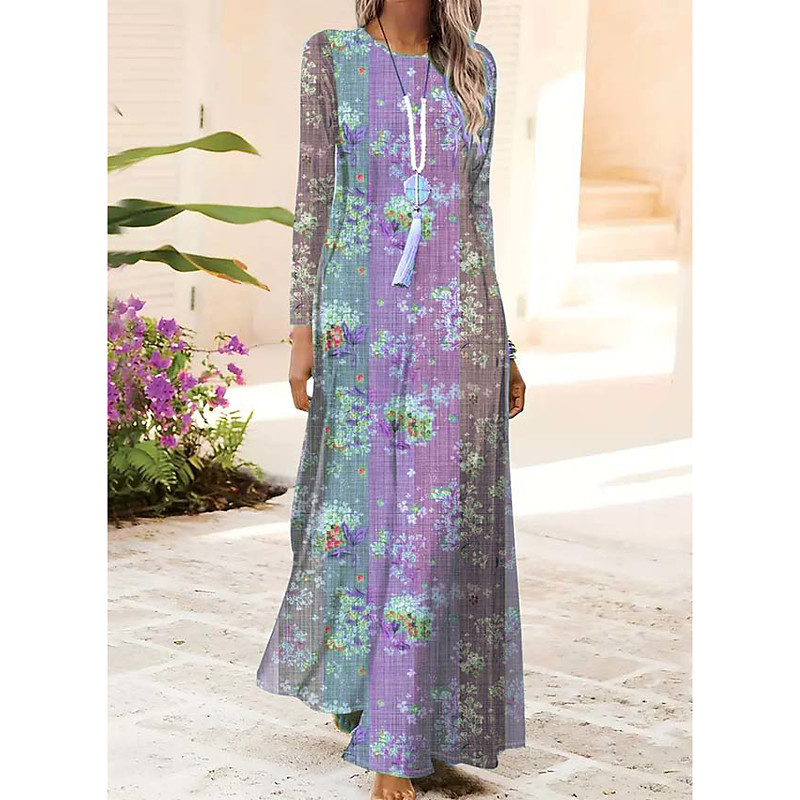 Women's Maxi Dress Shift Dress A Line Dress Party Casual Boho Daily Date Going out Regular Fit Floral Graphic Tie Dye Long Sleeve Crew Neck Light Green Pink Blue Light Purple Spring Fall Winter Autumn