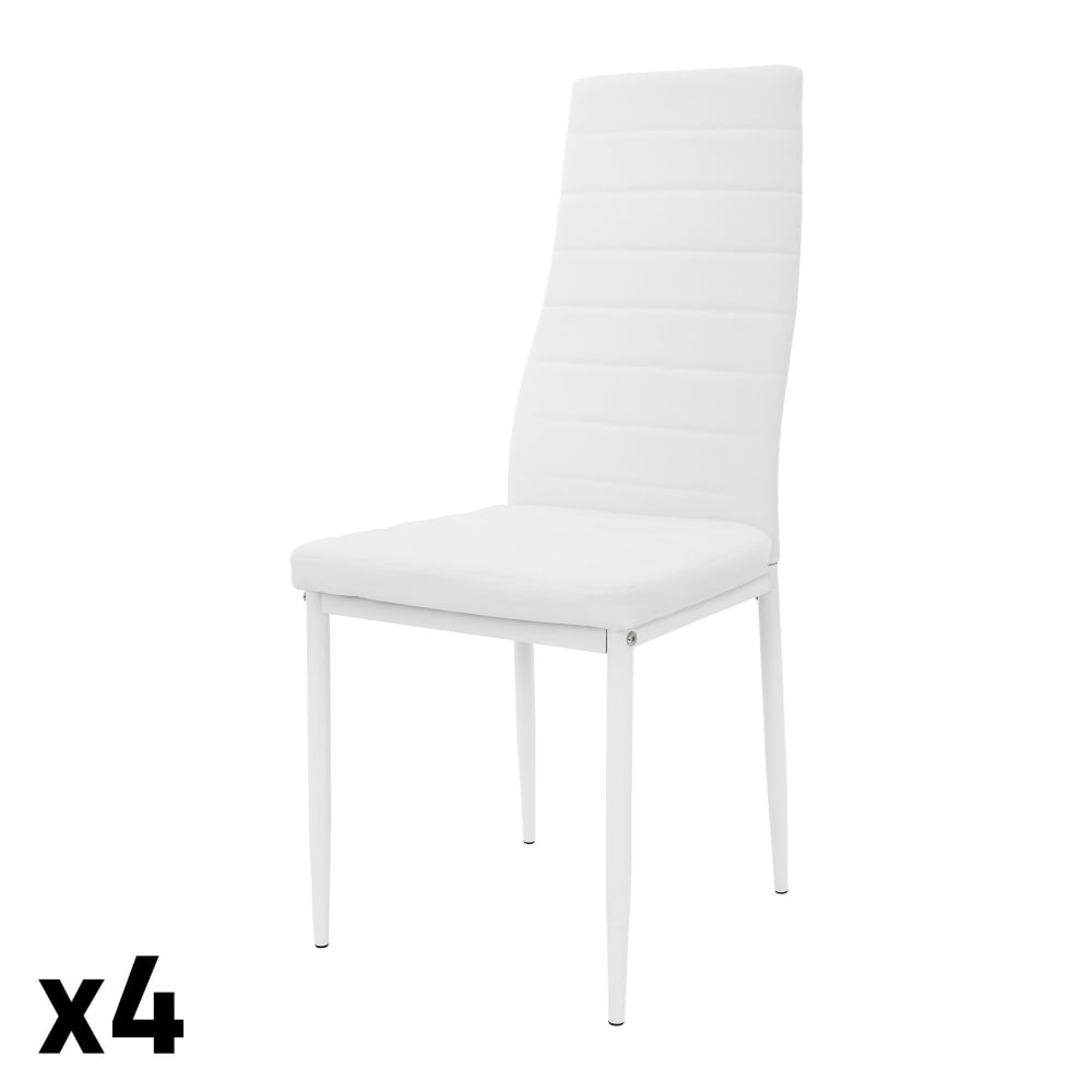 Set 4 sedie da pranzo similpelle bianco con gambe metallo e schienale