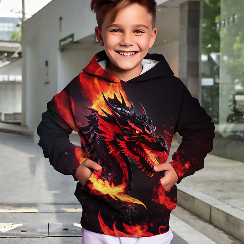 Boys 3D Animal Dragon Hoodie Pullover Long Sleeve 3D Print Fall Winter Fashion Streetwear Cool Kids 3-12 Years Outdoor Casual Daily Regular Fit