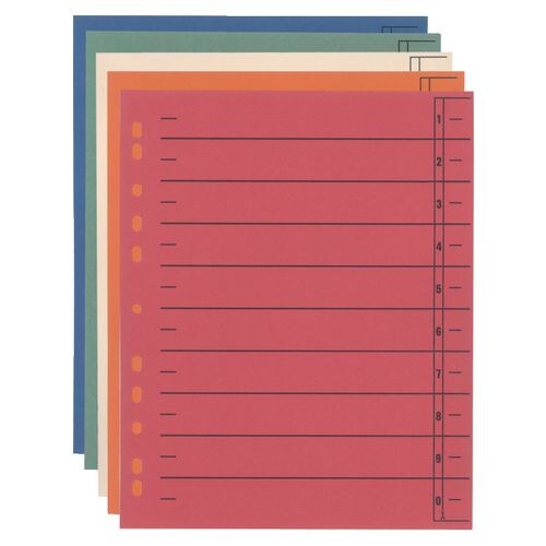 Viking 1 bis 10 Trennblätter Recycled 100% DIN A4+ Farbig sortiert 10-teilig Pappkarton 11 Löcher 100 Stück