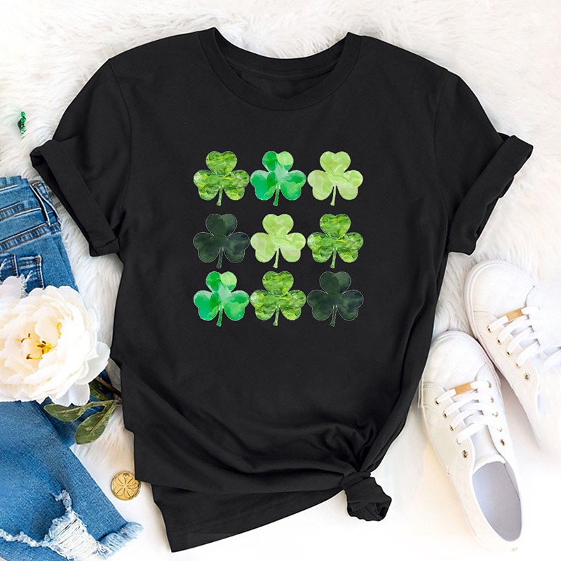 St. Paddy's Day St. Patrick's Day Women's T Shirt Leaf St. Patrick's Day Short Sleeve Round Neck Regular Tops Holiday Weekend Print Blue Black White Green Light Grey