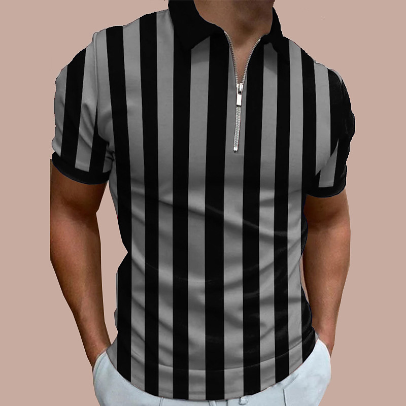 Men's Bowling Shirt Golf Polo Casual Daily Quarter Zip Short Sleeve Fashion Modern Stripes Stylish Quarter Zip Summer Regular Fit White Red Blue Brown Green Dark Grey Bowling Shirt
