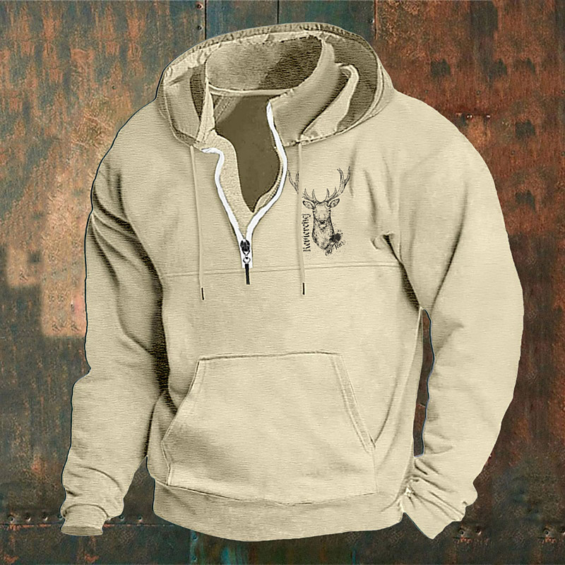 Men's Hoodie Wine Navy Blue Green Khaki Light Grey Hooded Elk Front Pocket Quarter Zip Daily Holiday Going out Polyester Streetwear Casual Bavarian Fall Winter Clothing Apparel Hoodies Sweatshirts