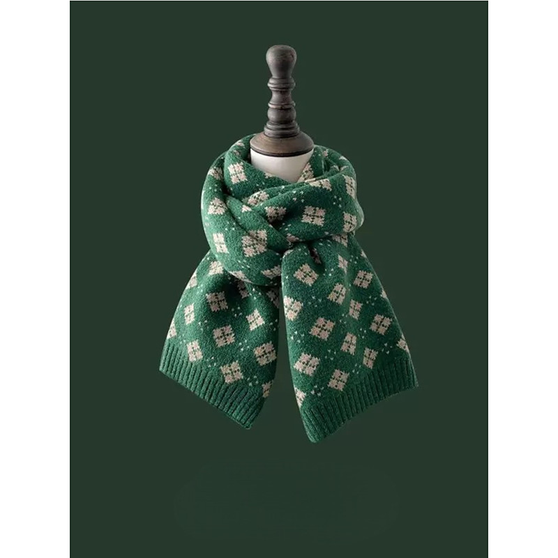 Women's Christmas Scarf with Reindeer and Tree Knit Pattern, Winter Holiday Gift, Cozy Green Accessory