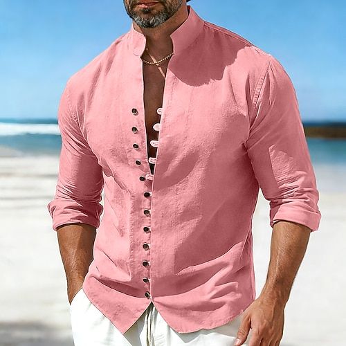 Herren Hemd Leinenhemd Sommerhemd Freizeithemd Knopfhemd Einfach Lässig Täglich Blau Schwarz Weiß Rosa Langarm Mandarinkragen Sommer Frühling Bekleidung Button-Down