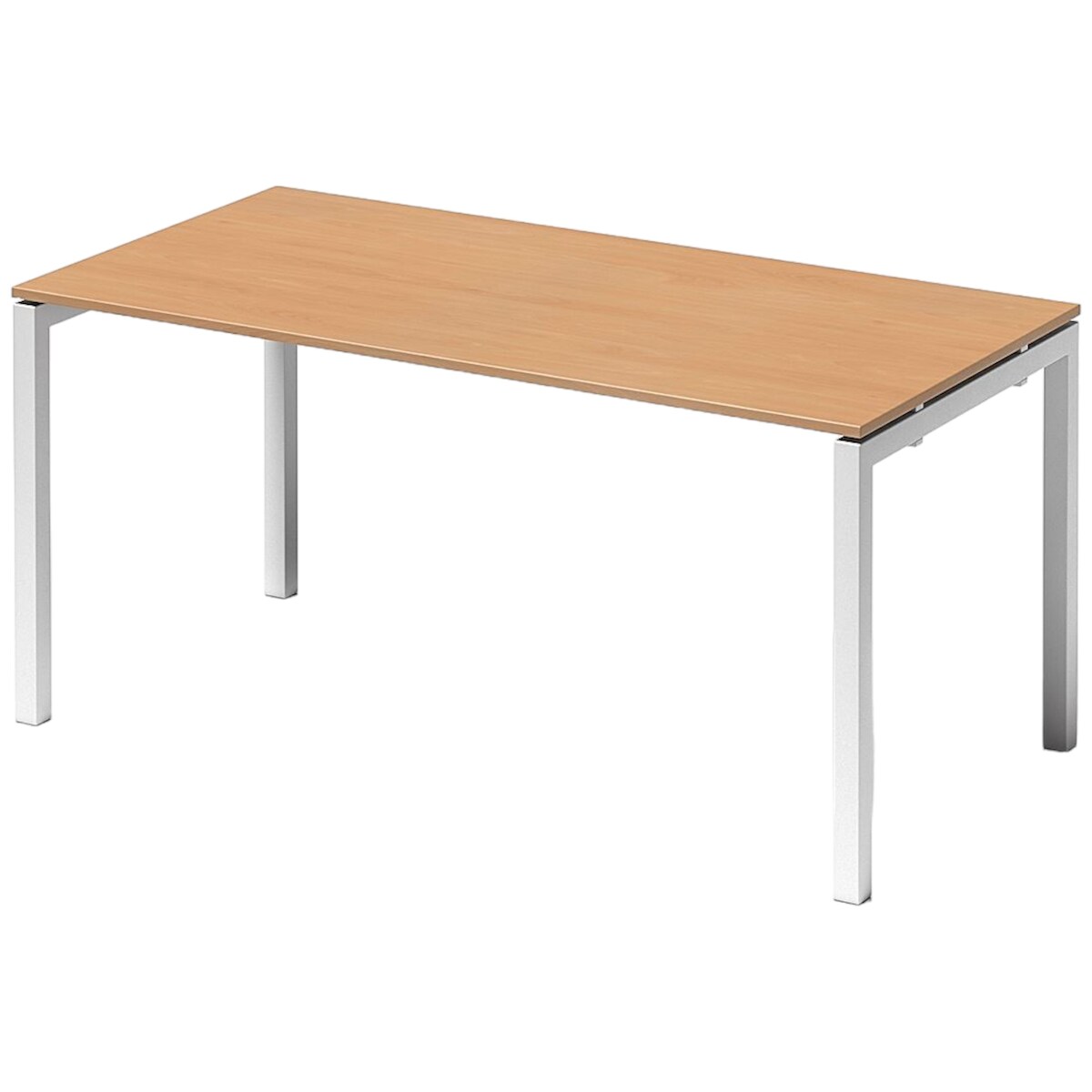 Bisley Cito höhenverstellbarer Schreibtisch 160x80 cm, Tischplatte in Buche, Gestell in Weiß - PC Tisch für's Büro manuell höhenverstellbar,