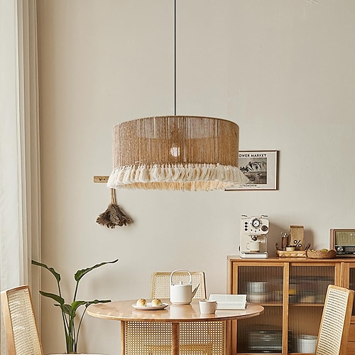 Lampadario rotondo in stile giapponese per sala da pranzo, lampadario in corda di canapa intrecciata a mano, apparecchio di illuminazione per soffitta in stile industriale retrò, illuminazione moderna