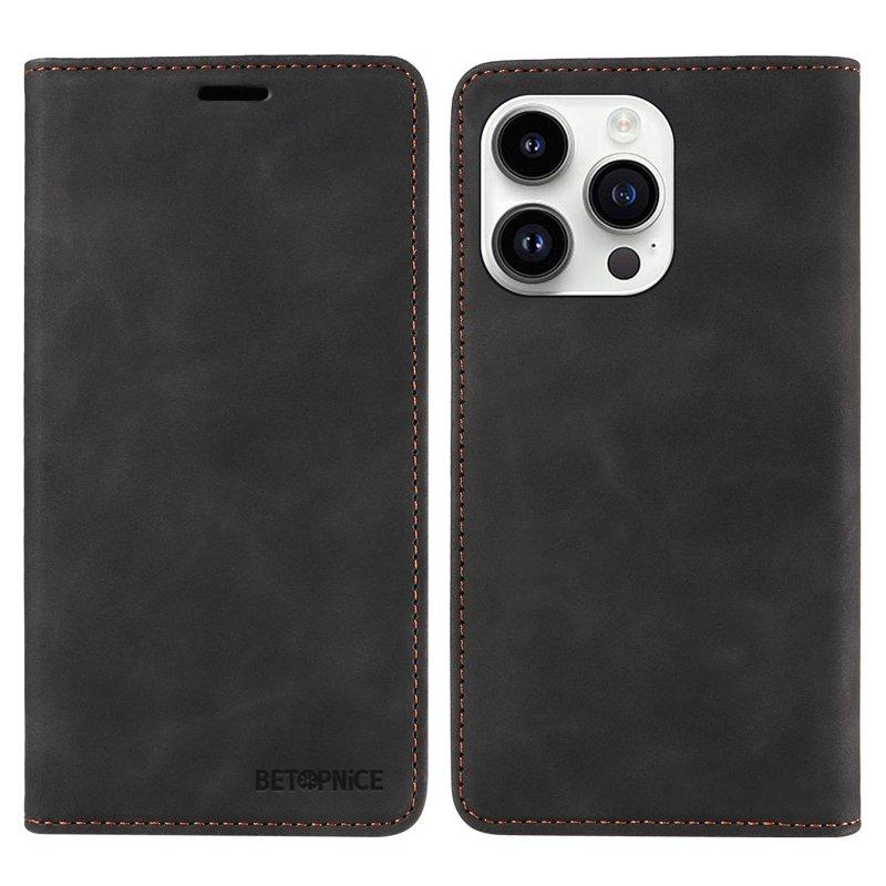 BETOPNICE 003 Mobilskal till iPhone 15 Pro RFID-Skydd KonstLäder - Svart
